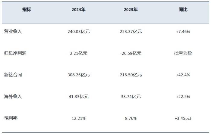 中铝国际全面践行“科技+国际”战略,2024年海外市场开发取得新突破,成功中标几内亚西芒杜铁矿项目柴油发电标段和C3标段,进入力拓EPC工程总承包体系。海外新签合同总额60.95亿元,同比增长65.09%;海外营业收入实现41.33亿元,同比增长22.50%。另外,2024年,中铝国际实现营业收入240.03亿元,同比增长7.46%;归母净利润2.21亿元,成功实现扭亏为盈。